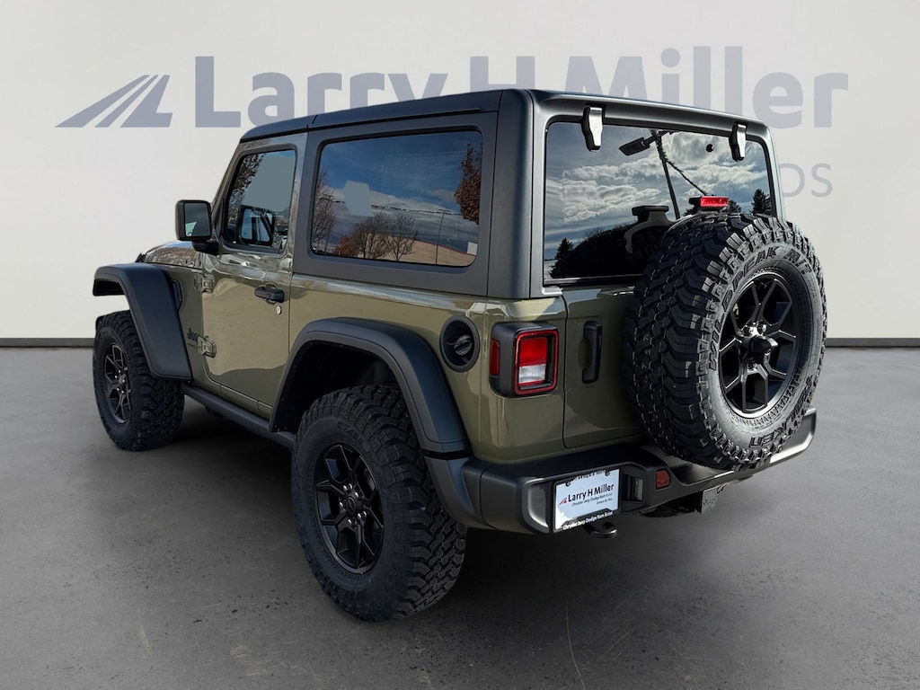 22W 2S6 2TW 4NU 4UQ AJK DFT E7X9 EC1 HT1 PJ5 YGN, CONVENIENCE GROUP -inc: Emergency/Assistance Call 2-Door Passive Entry Front Door Locks Cluster 7.0" TFT Color Display Universal Garage Door Opener Heated Front Seats Air Conditioning w/Auto Temp Control Heated Steering Wheel Air Filtering, 2.0L I4 DOHC DI TURBO ENGINE W/ESS, 17" X 7.5" PAINTED BLACK WHEELS (STD), QUICK ORDER PACKAGE 22W WILLYS -inc: 2.0L I4 DOHC DI Turbo Engine w/ESS 8-Speed Automatic 850RE Transmission 7 & 4 Pin Wiring Harness Conventional Differential Front Axle 4-Wheel Drive Swing Gate Decal Black Grille Injection Molded Black Rear Bumper Dana M210 Wide HD Tube Front Axle Daytime Running Lamps LED Accents Front LED Fog Lamps LED Premium Reflector Headlamps E-Locker Rear Axle Corning Gorilla Glass Security Alarm Class II Receiver Hitch Mold In Color Bumper w/Gloss Black Advanced Brake Assist Automatic Headlamps Off-Road Plus Mode Willys Hood Decal Full Speed Forward Collision Warning Plus Rock Protection Sill Rails Power Heated Mirrors Enhanced Adaptive Cruise Control Auxiliary Switches Dana M220 Wide Rear Axle Molded in Color Rubicon Highline Flare Premium Wrapped Steering Wheel Sun Visors w/Illuminated Vanity Mirrors, BLACK 3-PIECE HARD TOP -inc: Freedom Panel Storage Bag Rear Window Defroster Rear Window Wiper/Washer, 8-SPEED AUTOMATIC 850RE TRANSMISSION -inc: Adaptive Cruise Control w/Stop Anti-Lock 4-Wheel Disc Brakes Selec-Speed Control, MYFLEXCARE SERVICE PLAN, WILLY'S SUSPENSION (STD), 5 400 LBS GVWR (STD), BLACK CLOTH LOW-BACK BUCKET SEATS, 4.10 REAR AXLE RATIO (STD), LT285/70R17C BSW MUD TERRAIN TIRES (STD), 41, Four Wheel Drive, Power Steering, ABS, 4-Wheel Disc Brakes, Brake Actuated Limited Slip Differential, Aluminum Wheels, Tires - Front On/Off Road, Tires - Rear On/Off Road, Conventional Spare Tire, Tow Hooks, Tow Hooks, Intermittent Wipers, Variable Speed Intermittent Wipers, Privacy Glass, Rollover Protection Bars, Convertible Soft Top, Power Door Locks, AM/FM Stereo, Satellite Radio, Bluetooth Connection, Requires Subscription, MP3 Capability, Steering Wheel Audio Controls, Auxiliary Audio Input, Satellite Radio, Requires Subscription, Bluetooth Connection, Driver Adjustable Lumbar, Driver Adjustable Lumbar, Rear Bench Seat, Adjustable Steering Wheel, Trip Computer, Keyless Start, Keyless Entry, Power Door Locks, A/C, Cloth Seats, Bucket Seats, Floor Mats, Smart Device Integration, Smart Device Integration, WiFi Hotspot, Power Windows, Power Door Locks, Trip Computer, Immobilizer, Traction Control, Stability Control, Traction Control, Front Side Air Bag, Tire Pressure Monitor, Driver Air Bag, Passenger Air Bag, Front Head Air Bag, Rear Head Air Bag, Passenger Air Bag Sensor, Back-Up Camera